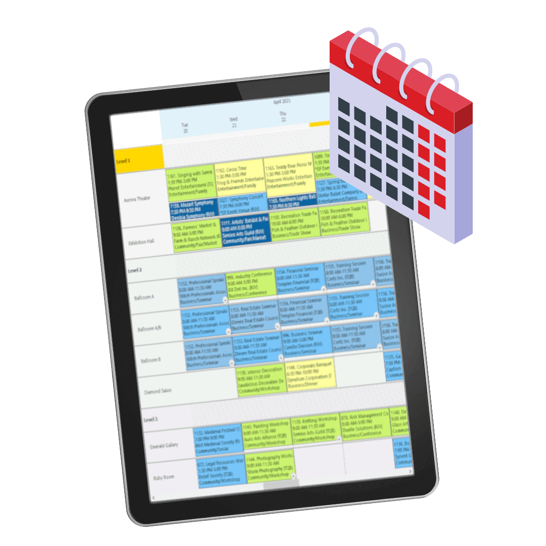 You’re a busy event professional, so you definitely don’t need constant phone calls and emails from staff, clients, and other stakeholders looking for event information (“Is Hall D open on May 5th?”, “What’s the status of the Tradeshow in September?”). With automatically published and updated event calendars, you empower your personnel, clients, and other associates to find the information themselves at their convenience... also saving yourself from time-consuming interruptions.